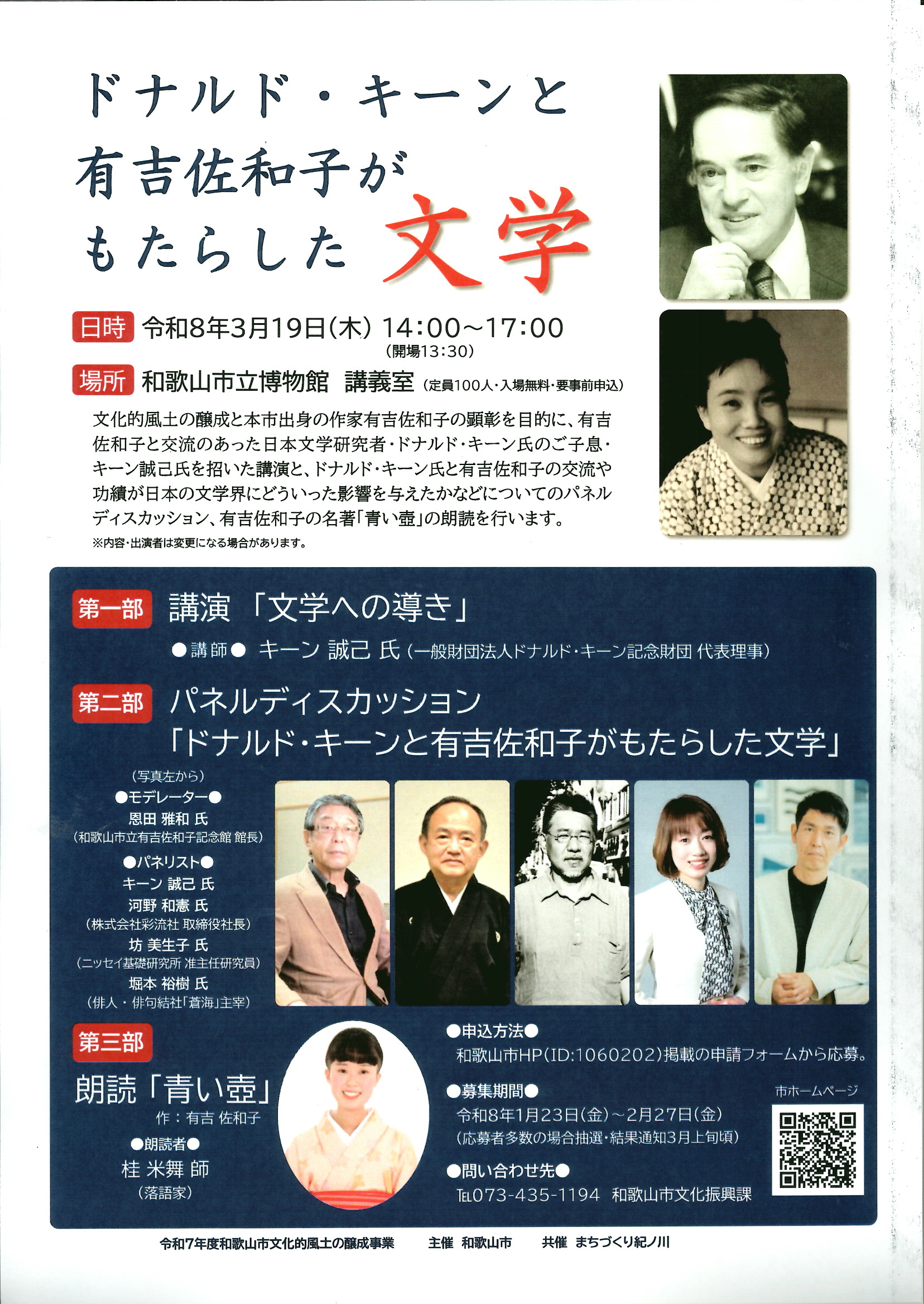 父ドナルド・キーンの命日2月24日に近い日で、2月21日(土)午後2時から、東京都北区の北とぴあ15階ペガサスホールで記念の講演会がございます。 父と親しかった元讀賣新聞の記者でいらした文芸評論…