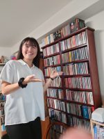 テーブルの上には、本屋さんで撮影者の方が買ってくださった新刊の『正岡子規』(新潮文庫)があります。そしてドナルド・キーンの落款が押してあります。書店で本を買ってくださった方には、すべてにドナルド・キーンの落款を押して差し上げるサービスがありました。