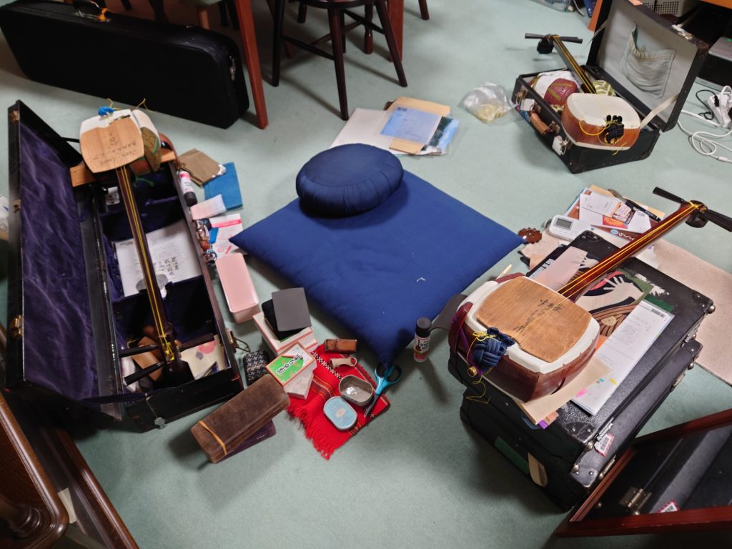 昨日10日はその日に使う三味線の手入れと調整、見台や衣装の準備に大わらわでした。