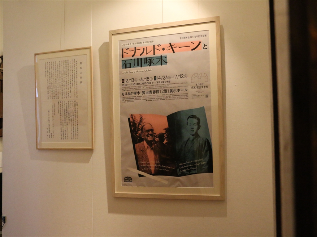入口にはもりおか啄木・賢治青春館の館長、坂田裕一様のご挨拶文とポスターがあります。