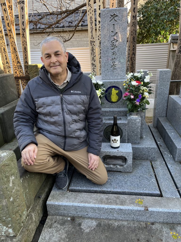 離日を前にコミンズ先生が来られ、父ドナルド・キーンのお墓参りをしました。梅の花も満開でした。