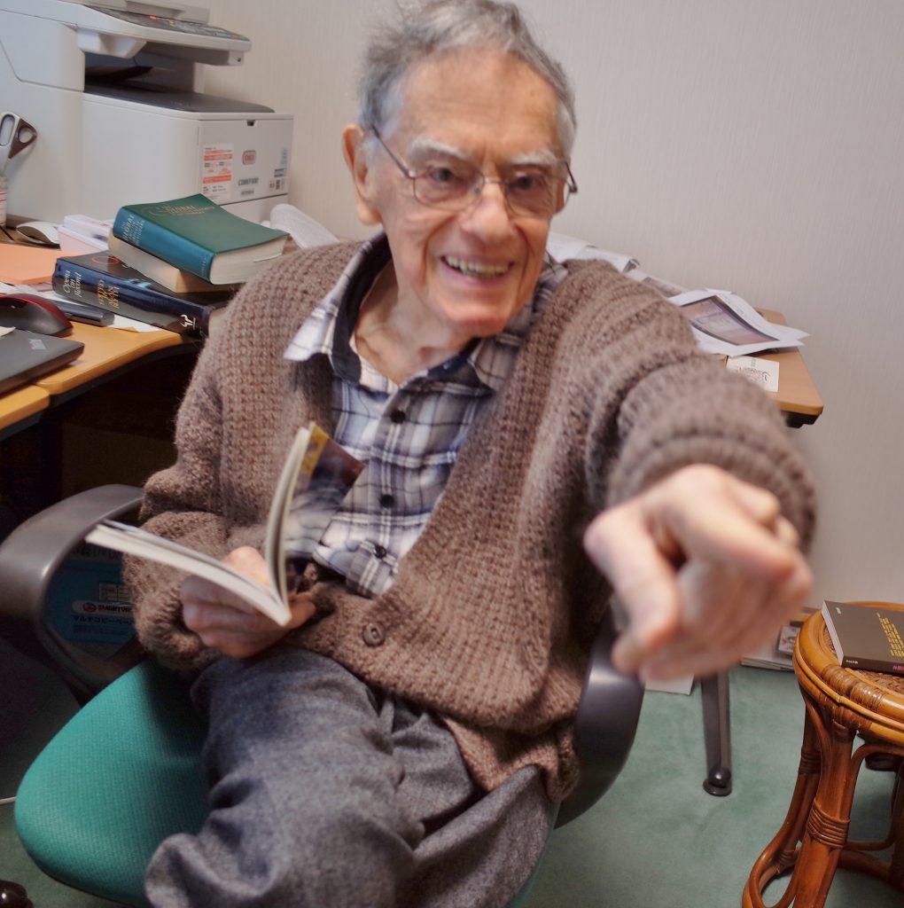 午前中には書斎にこもり読書などしていました。私がカメラを向けると私を指さして嬉しそうにポーズしました。なつかしいですねえ。