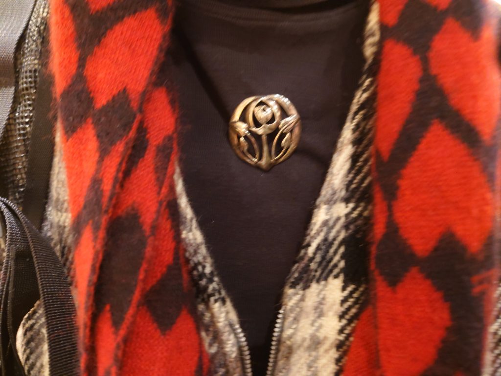 その日娘さんが身に着けていらした赤と黒のマフラーとブローチは、父がプレゼントしたものだそうです。(写真の通りです)