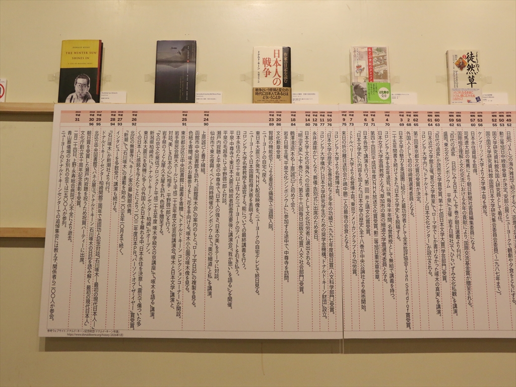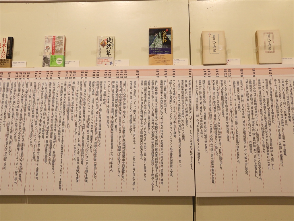 ドナルド・キーンの年譜の上には、その時代に出版された書籍が置かれていてよいアイデアだと思いました。