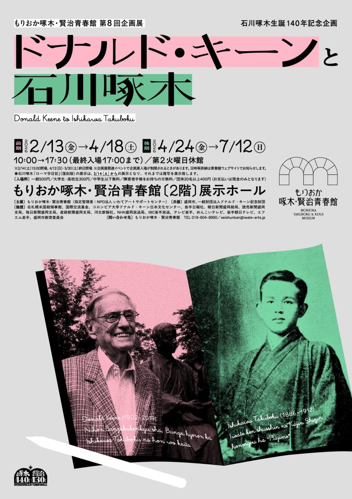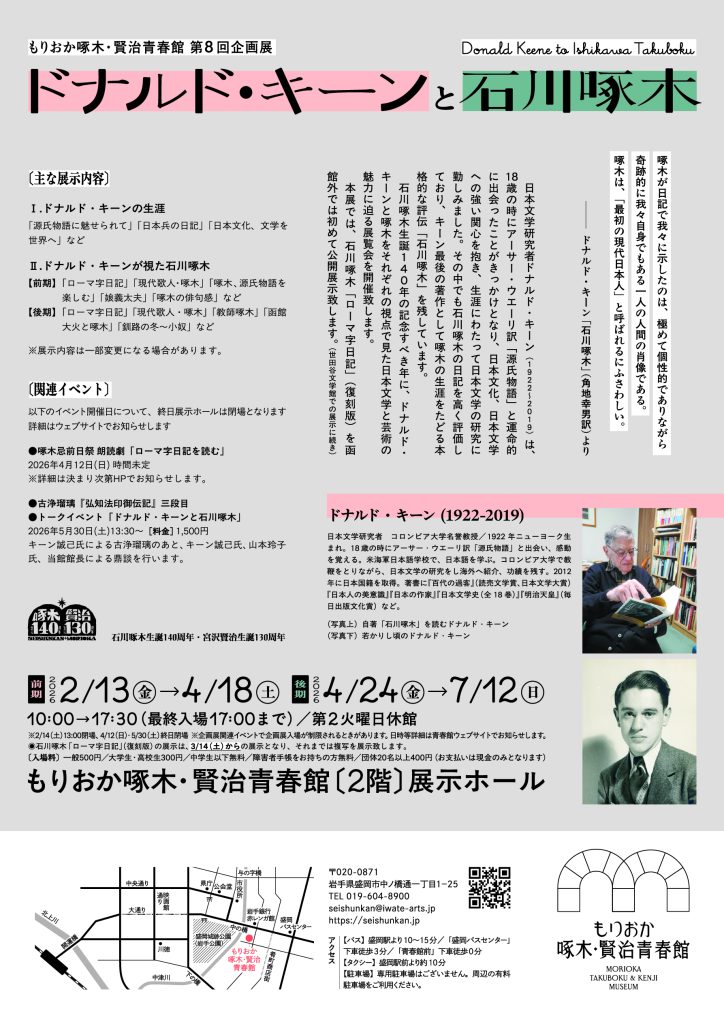 その石川啄木とドナルド・キーンをフォーカスした展覧会、「ドナルド・キーンと石川啄木」がもりおか啄木・賢治青春館で開催されます。