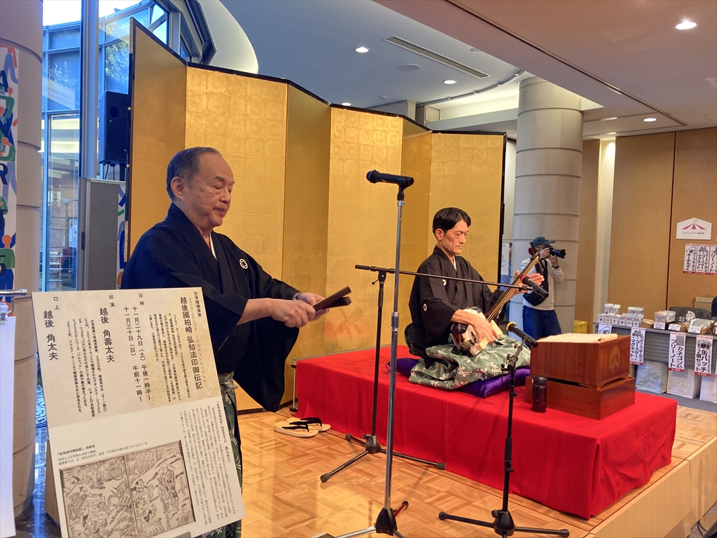 セタブンマーケット2025の二日目の、私にとってのメインはやはり弟子の越後角壽太夫の古浄瑠璃『弘知法印御伝記』四段目の演奏でした。