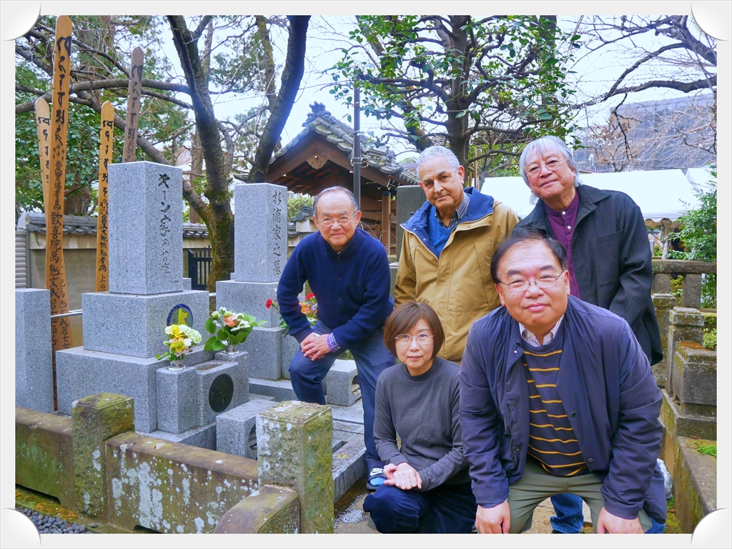 技術の長島光男さんと小林秀樹さんは準備のため1時に来てくださっていたのですが、2時にコミンズ先生が来られると直ぐに参加者全員でお墓参りに行き、ドナルド・キーンに感謝の気持ちをそれぞれが捧げました。録音がうまくいくようにお祈りしました。