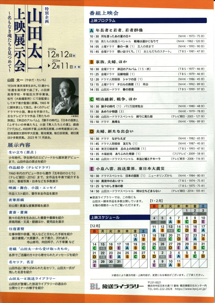 ご遺族から現在山田太一上映展示会が開催中であることを知り行ってきました。