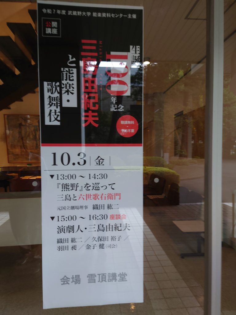 10月3日に、武蔵野大学能楽資料センター主催の公開講座が雪頂講堂であり、来日して間もないコミンズ先生と一緒に行ってまいりました。