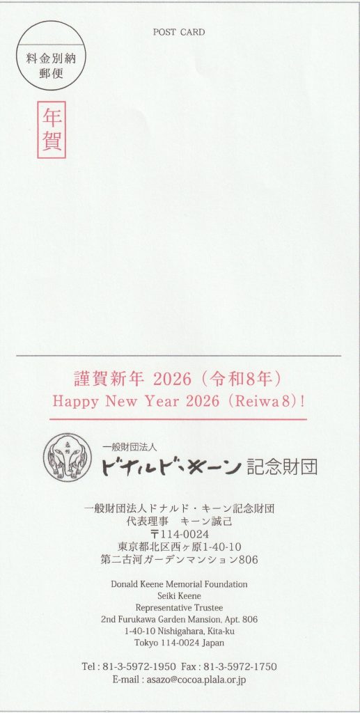 昨年は、世田谷文学館におけるドナルド・キーン展(現在も開催中です)などでお世話になり大変ありがとうございました。
